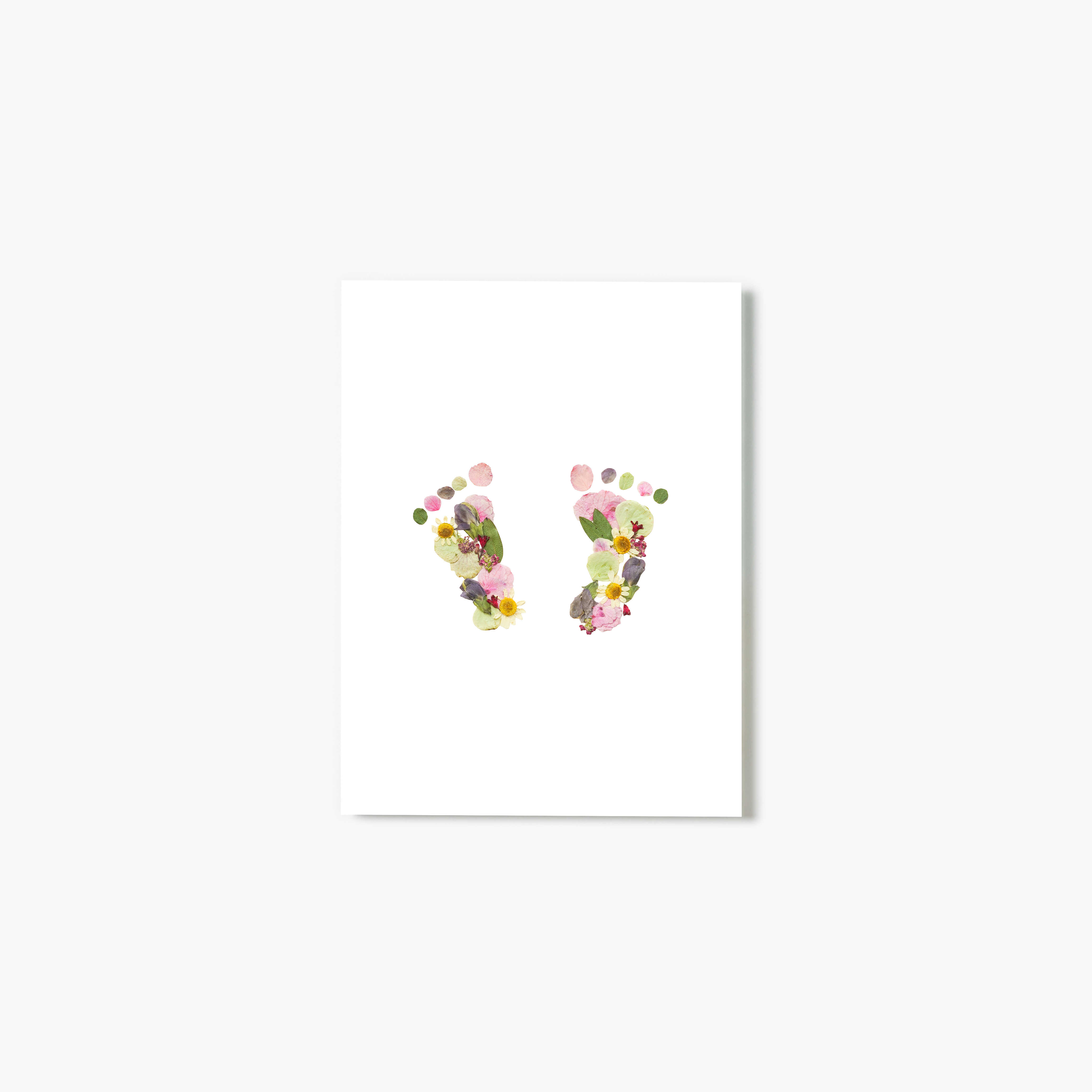 Soft blush petals and fresh greens come together in the sweetest little statement for a nursery wall. From the Baby Blooms Pressed Floral collection, real flowers are dried, pressed, and arranged into a delicate pair of baby feet—then photographed and printed on glass. It’s equal parts keepsake and showstopper.