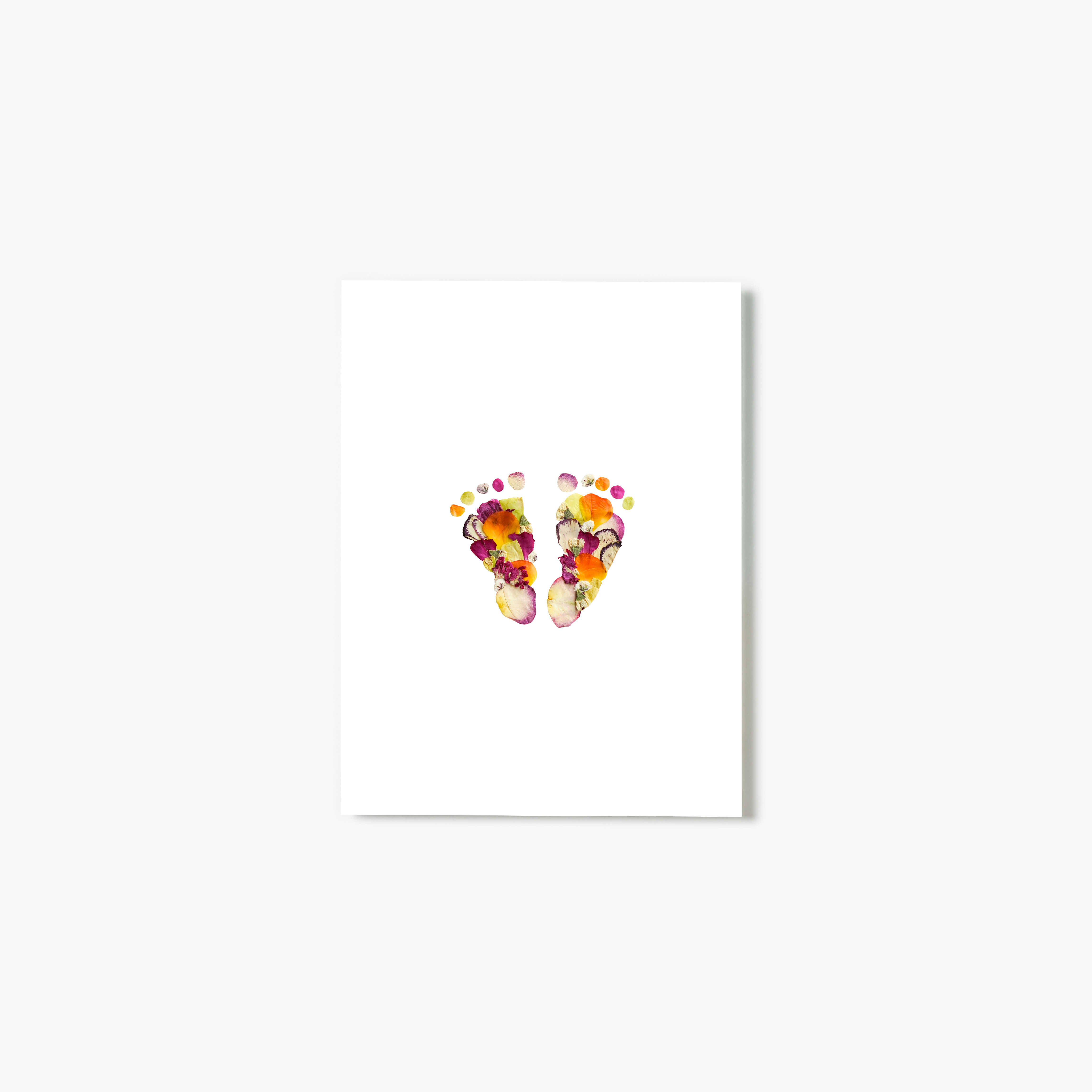 All the colors of golden hour, captured in bloom. This Baby Blooms Pressed Floral design uses real flowers in vibrant oranges, yellows, and magentas, with a pop of green for contrast—pressed into tiny footprints and printed on glass. A little glow goes a long way.