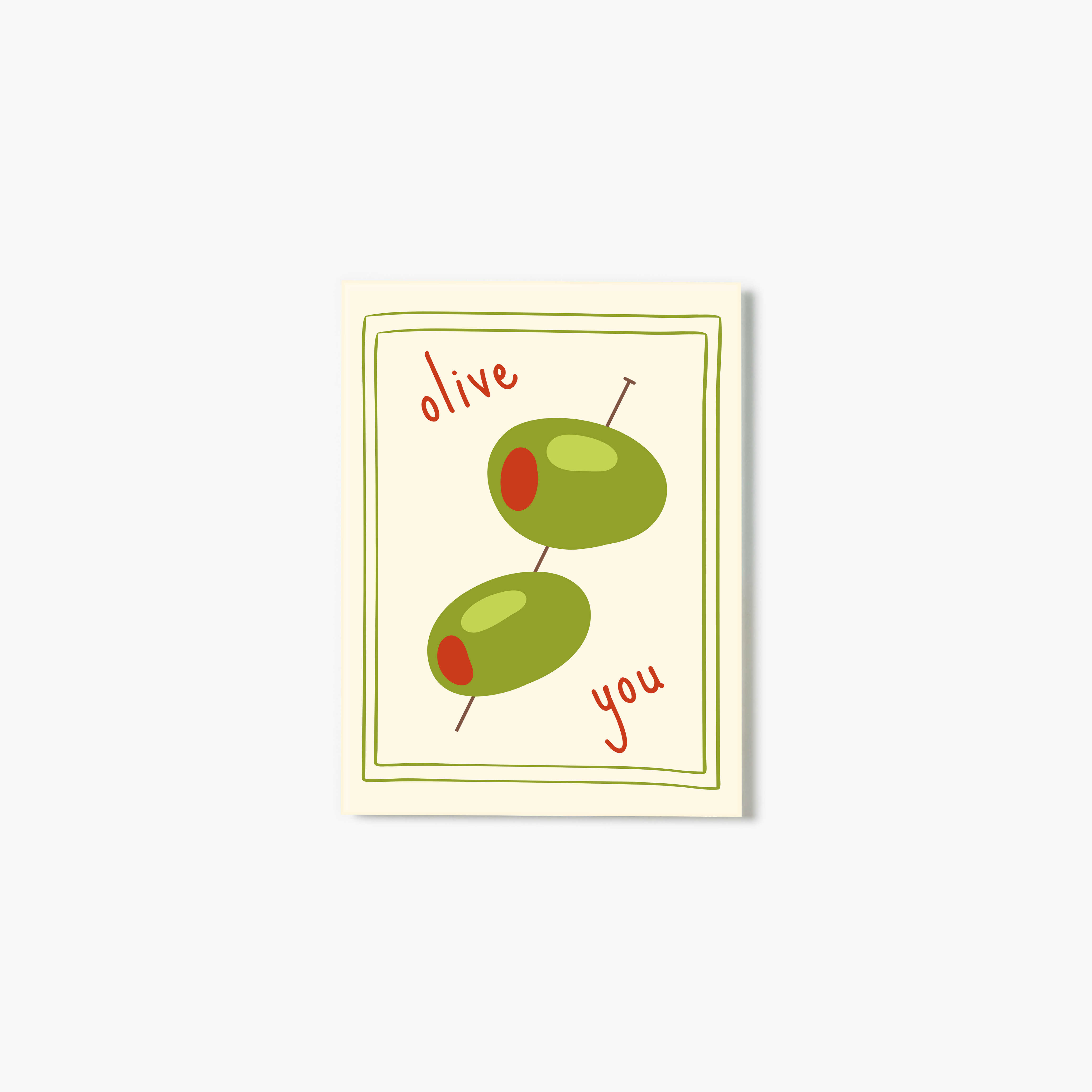 Two olives, one pun, and endless charm. Perfect for a kitchen, bar nook, or the olive-lover (or pun-lover) in your life. A cute, totally giftable reminder of your love.